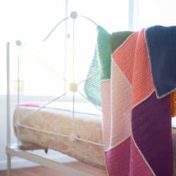The Happy Patch Blanket (that’s it below) is a “pieces and join” blanket, where the different coloured patches are crocheted individually and then joined together at the end.