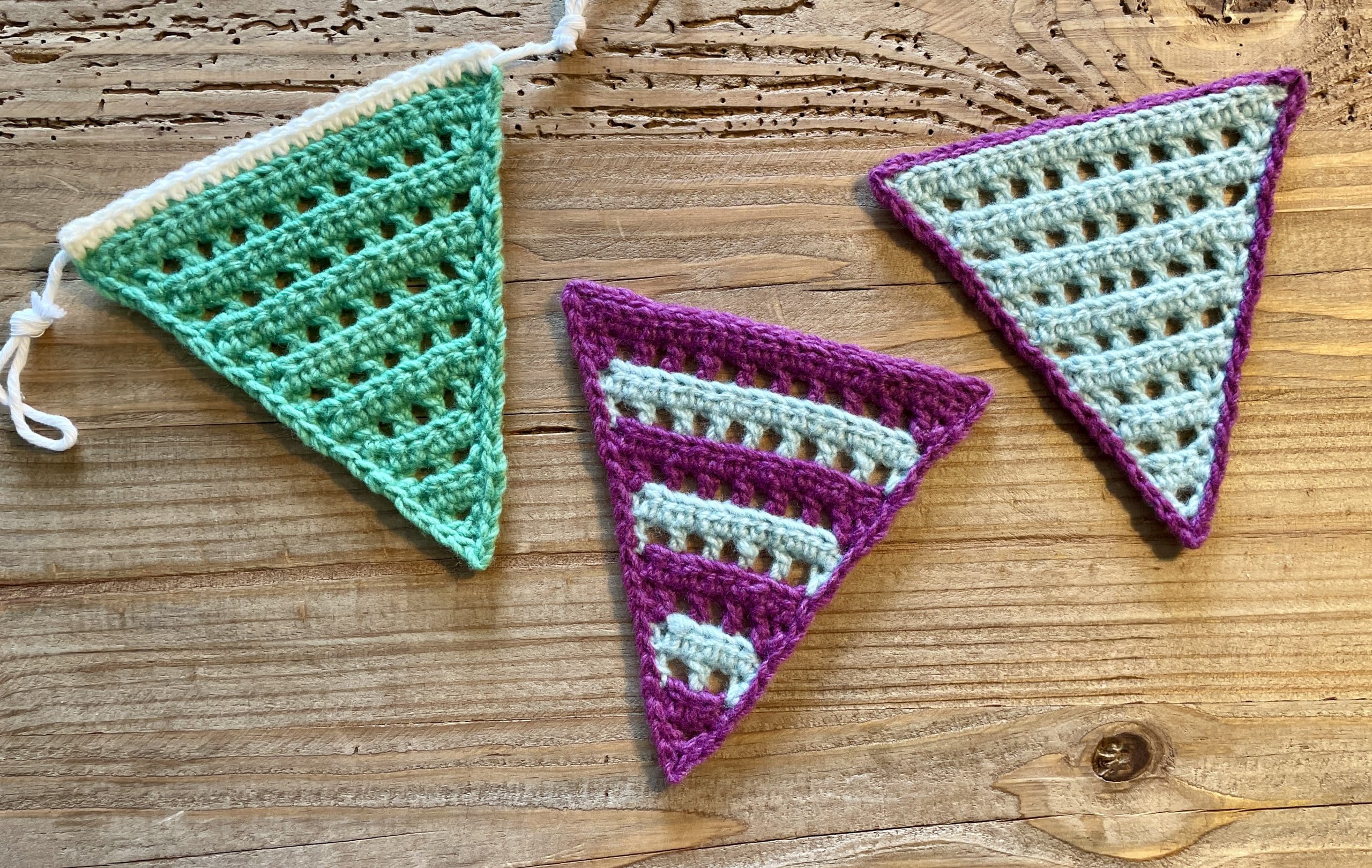 Party Bunting combines textured crochet stitches with beautifully shaped triangles that flutter in the wind.